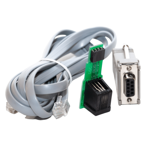 El DSC PCLINK-SCW es un kit de conector que se utiliza para conectar paneles de alarma DSC a una PC para una fácil carga/descarga en el sitio al panel de alarma.